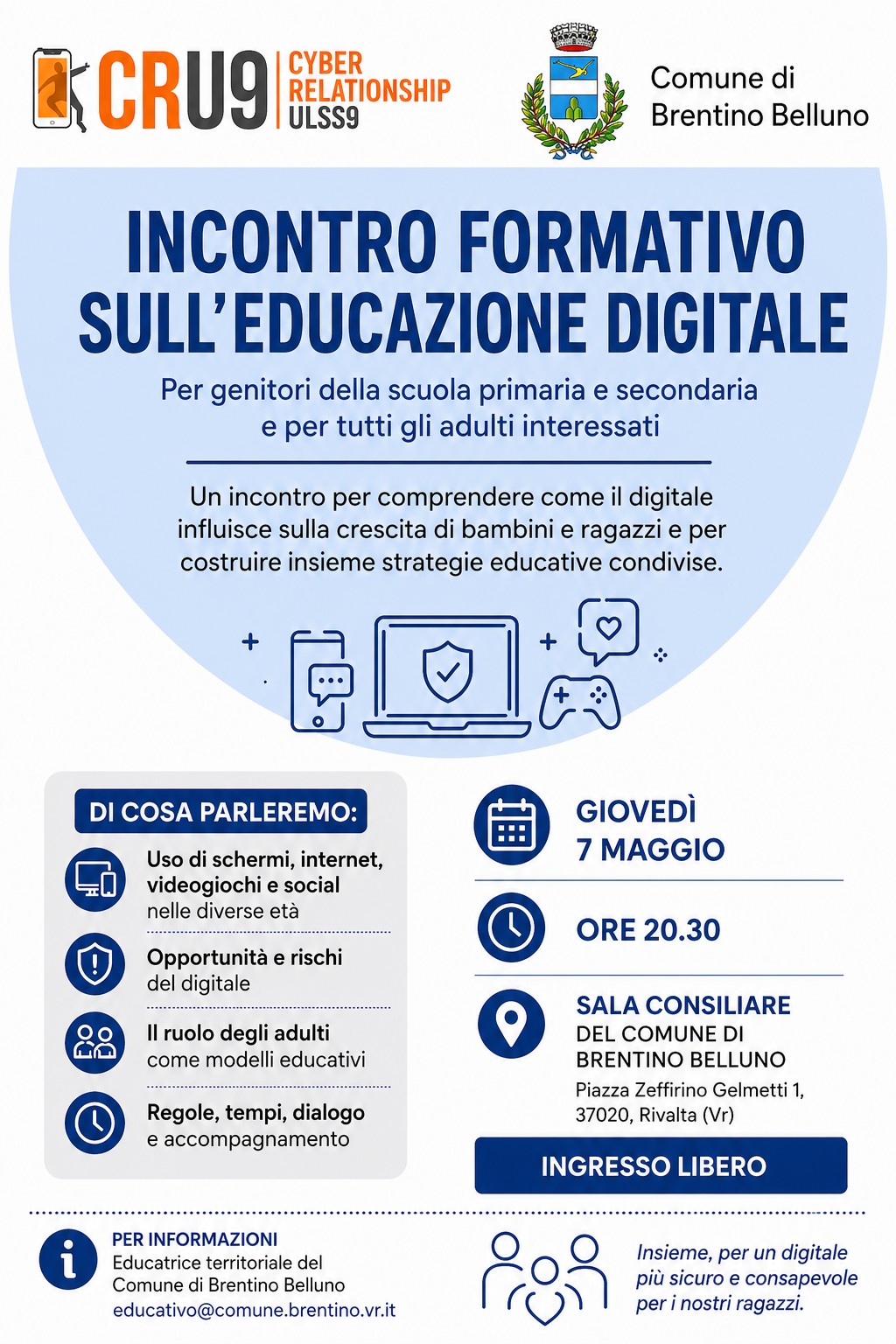 L'Amministrazione comunale vi invita a partecipare ad un incontro formativo dedicato ai genitori sul tema dell’educazione digitale.